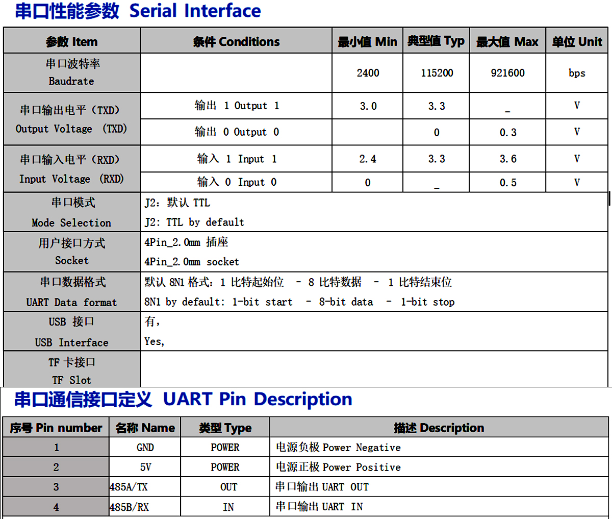 | 串口通讯方式 | Serial communication method | TTL (可定制RS485/RS232) | |