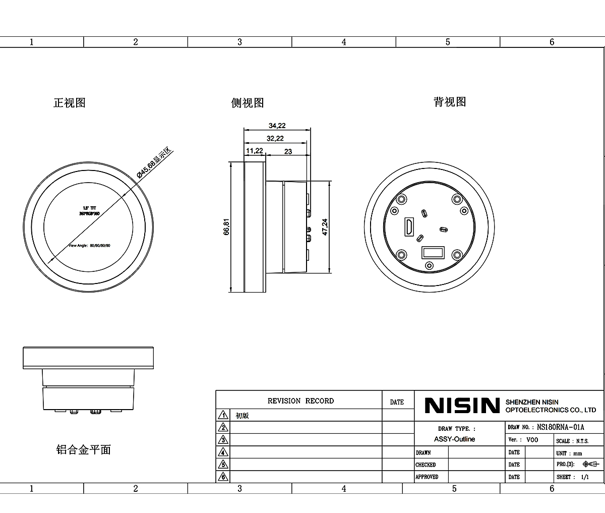 | 旋钮屏外形尺寸 | Knob Screen Dimensions | 66.81*34.22*47.24mm | |